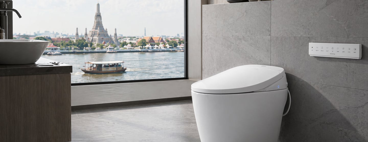 ฝารองนั่งอัจฉริยะดีไซน์ Ultra Slim บางเพียง 9.5 ซม. มาพร้อมระบบทำความสะอาดอัจฉริยะ รีโมทกันน้ำ และระบบฆ่าเชื้อ 3 ชั้น เพื่อยกระดับสุขอนามัย ความสบาย และความมั่นใจในทุกวัน